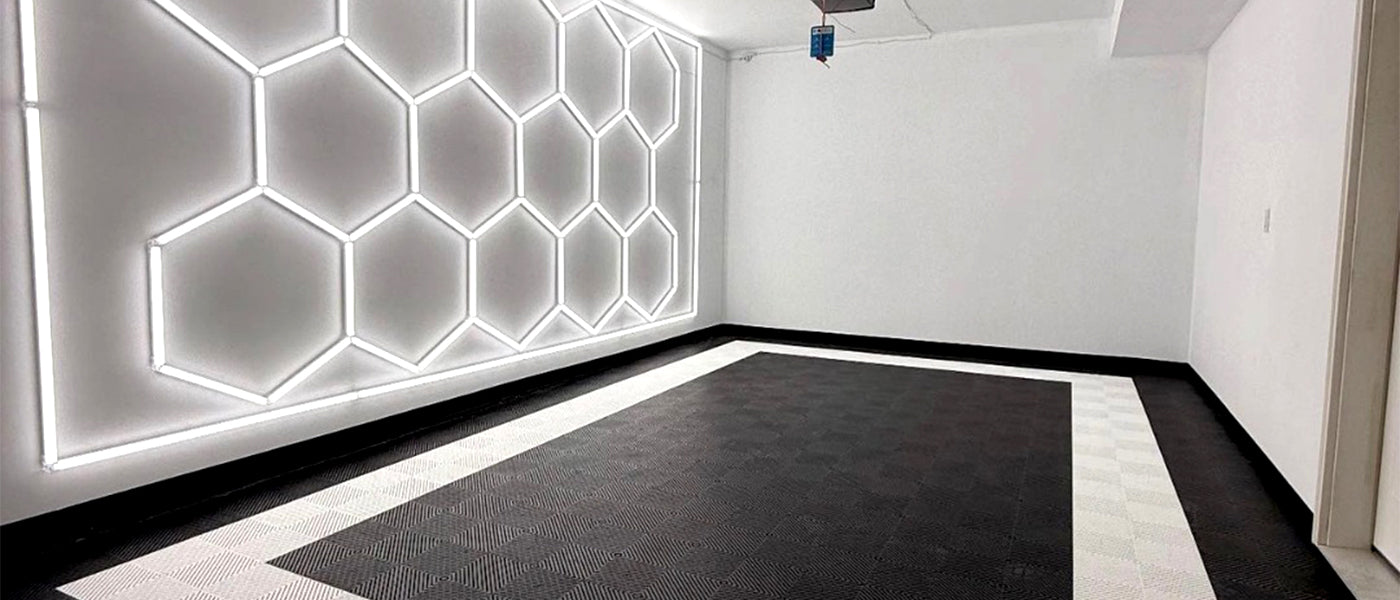 Explore how our garage flooring tiles and hex lights turn ordinary spaces into extraordinary ones. From sleek, durable garage makeovers to modern lighting setups, our gallery showcases real projects and inspiration to spark your own transformation.